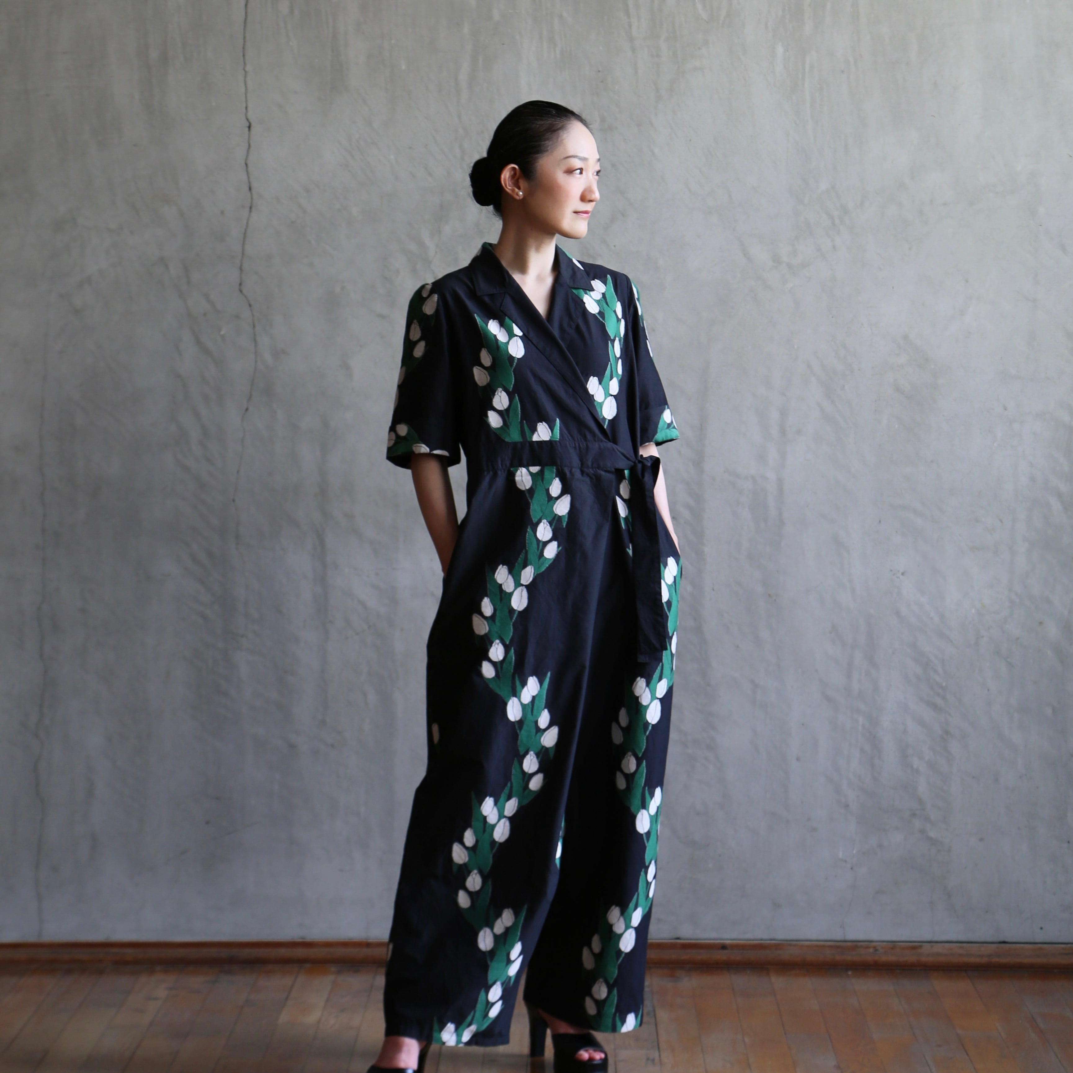 大きく流れるような柄を活かして、ワンピースやスカート、浴衣等にも素敵です。同色の平織り無地のご用意もございます。( https://www.ibamotohonten.com/items/59728747 )組み合わせて、シャツ等にも。